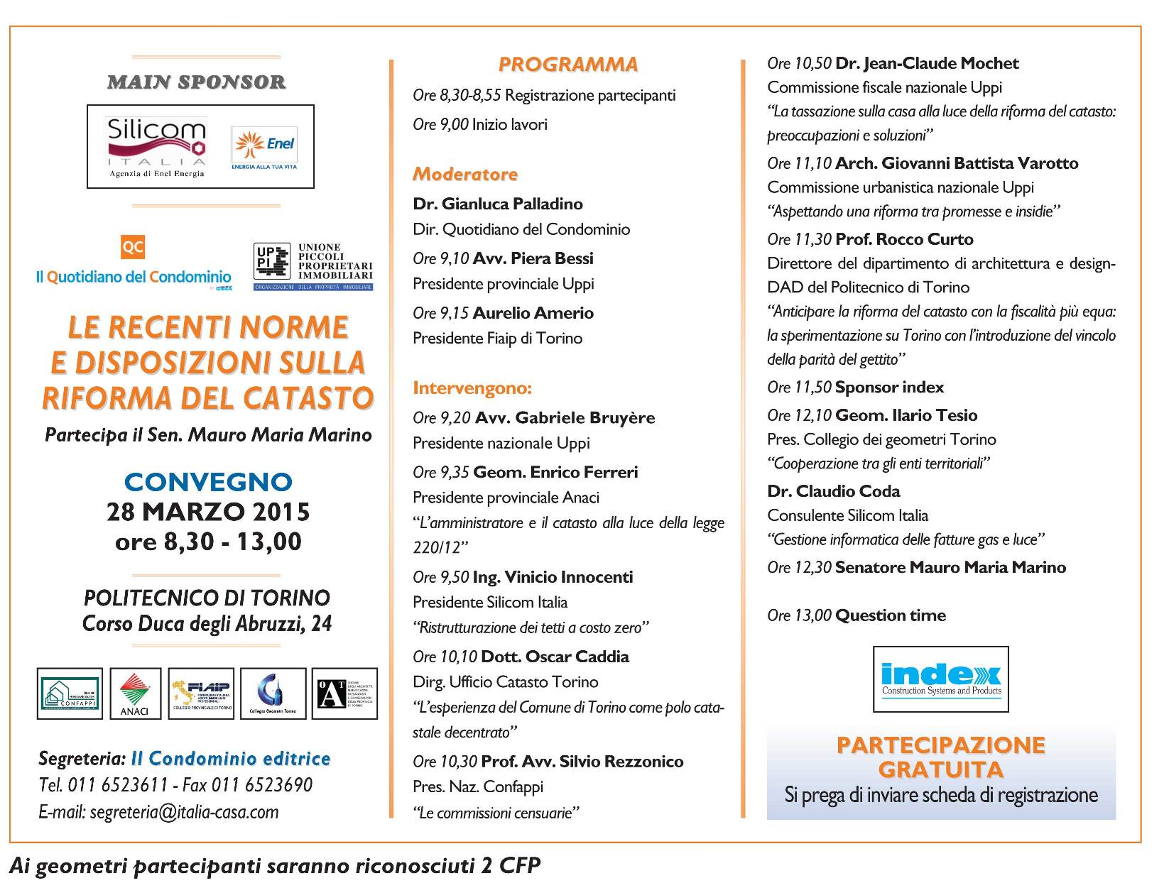 Convegno “Le recenti norme e disposizioni sulla riforma del Catasto” – 28 Marzo 2015